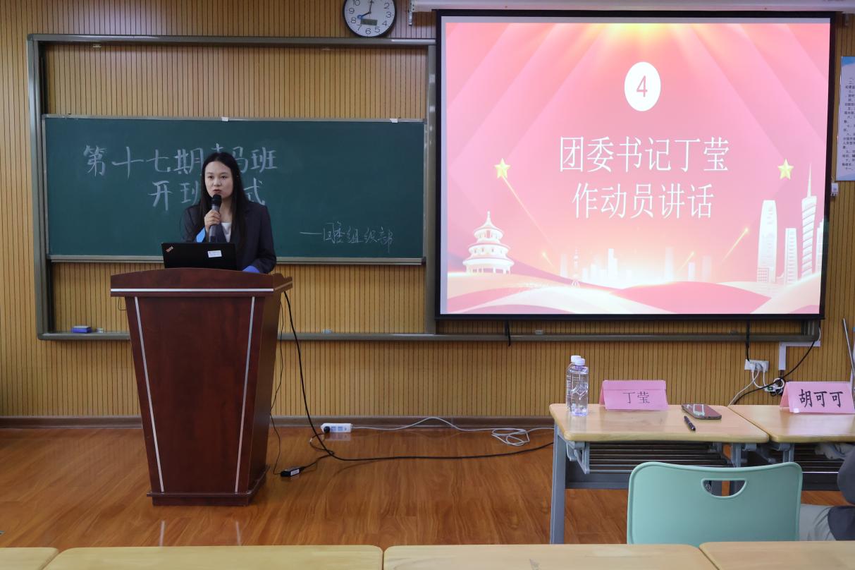 为引导广大团员青年学会用思想武装头脑,用行动勇于担当,积极向党组织靠拢,5月10日,我院第十七期“青年马克思主义者培养工程”培训班开班仪式在广学楼302教室举行。学院团委书记丁莹、马克思主义学院教师胡可可出席,第十七期全体青马班学员参加,共同开启为期一年的理论深化与实践锻造计划。