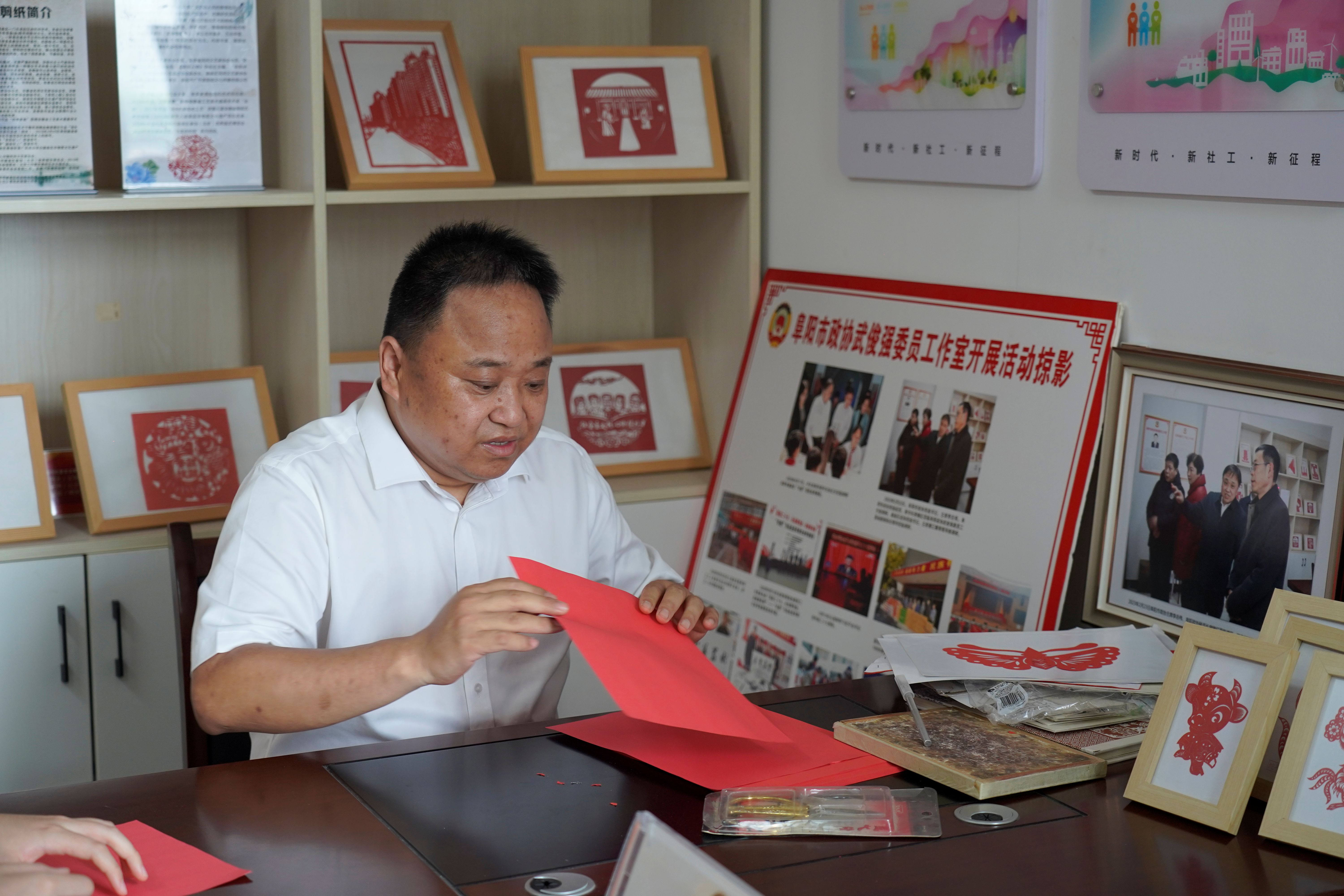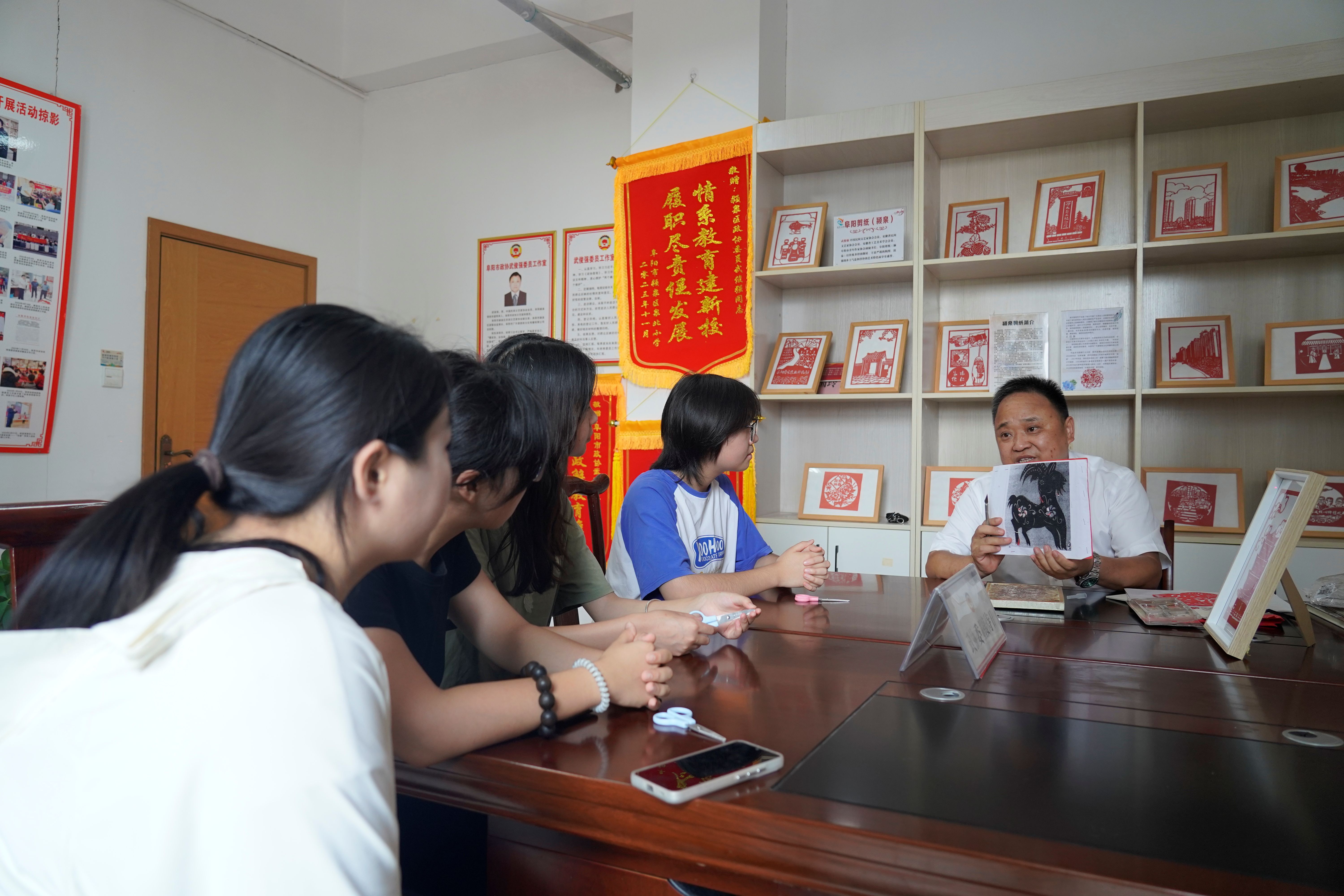 调研的核心环节是专访阜阳剪纸非遗传承人。传承人深情讲述了自己自幼与剪纸结缘、毕生致力于技艺传承的故事。面对学习周期长、手工创作耗时、经济回报有限等现实挑战,传承之路充满艰辛。谈及数字化技术,传承人表达了开放的态度:“AI辅助能拓宽创作思路,提高效率,更重要的是,它能让更多年轻人通过他们熟悉的数字平台,认识到阜阳剪纸的独特价值。”这番话让队员们深刻感受到传承人的担当,也引发了大家对“如何在创新中守护传统内核”的深入思考。采访后,传承人展示了精湛的作品,并指导队员们体验基础剪纸技法,让大家亲手触摸到这门艺术的精妙。