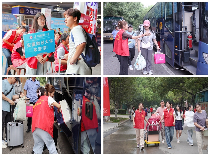 “同学,你好,这里是安徽财经大学新生接送点。有什么需要帮助的吗?”“行李给我们,我带你们去报到点。”迎新当天,在高铁站、火车站接站点以及在校园内的角角落落,志愿者的微笑与暖心服务无处不在。他们耐心地向新生提供引导、指示和答疑等服务,热心地为学弟学妹们搬运行李。“去年报到的时候,也是学长学姐帮我拎着行李送到宿舍的。今年我成为了学长,也有责任帮助有需要的学弟学妹。”今年刚成为大二的小郑同学开心地说到。他告诉记者,一上午时间自己已经帮助了7个新生家庭完成报到手续,并安全送到了学生宿舍。