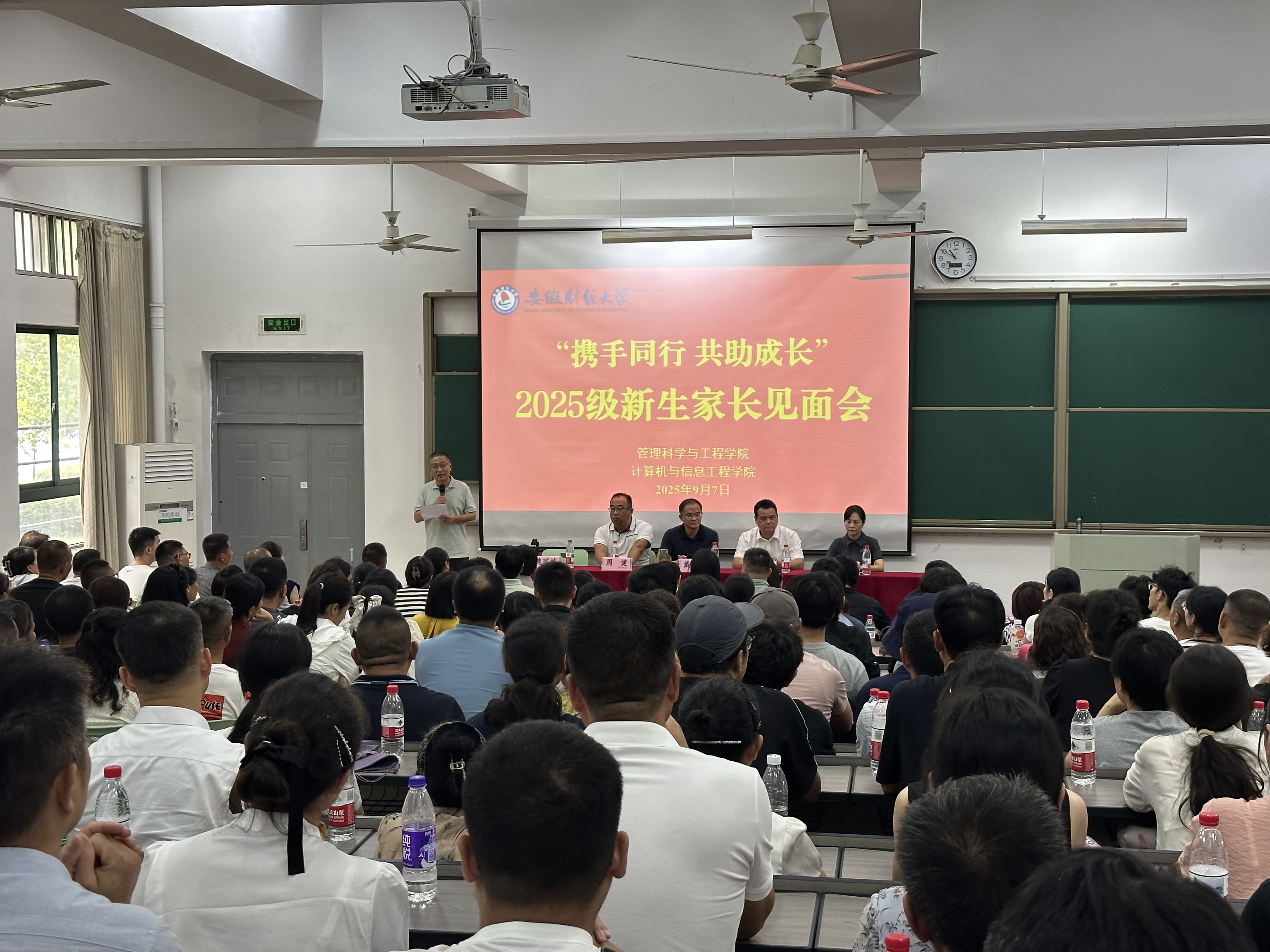 9月7日下午,管理科学与工程学院和计算机与信息工程学院于龙湖东校区广学楼101教室联合举办2025级新生家长见面会。两学院全体领导、新生辅导员、系(部)主任以及250余名新生家长共同参会。
